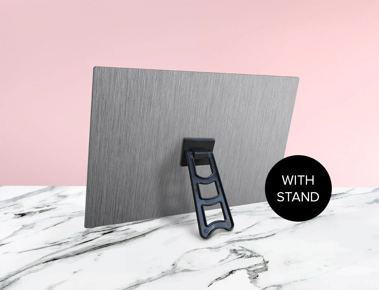 Our complete assortment includes 17 sizes, ranging from a compact 13x18cm (5x7") metal print to a large 60x60cm (24x24") print. Choose from tabletop sizes with a metal easel or plastic stand, or opt for wall-mounted sizes with a hanging bracket system included. Whether you're looking to showcase your best photos or create custom metal wall art, Diamond Photo has the perfect solution for you.